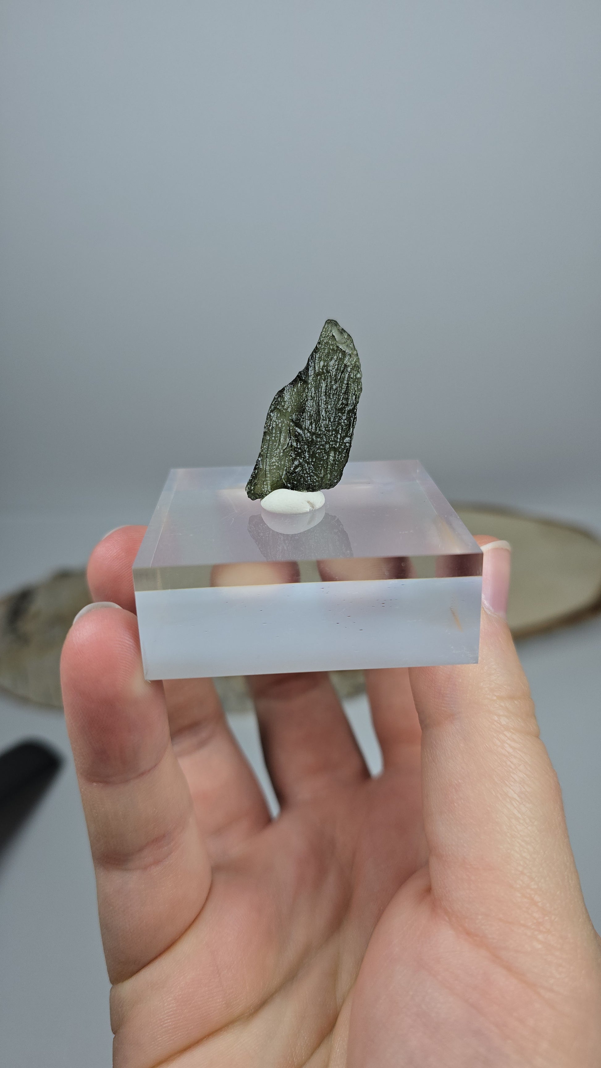 Jedes Stück zeigt einzigartige Strukturen, von feinen Ätzmustern bis hin zu markanten, rauen Oberflächen. Sein intensives Smaragd- bis Flaschengrün und die leichte Transparenz machen ihn zu einem der begehrtesten Tektite weltweit.